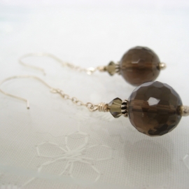 These lightweight earrings feature 6mm small Rainbow Soocho Jade and Swarovski crystals. The brass components were created from thick brass wire, hammered flat and filed smooth. The brass was antiqued to give a rustic, darkened appearance.