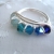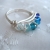 This ring features six (6) 4mm Swarovski crystal bicones in shades of blue arranged from light to dark. It is wrapped with non-tarnish Artistic wire. Please note that if you have a smaller ring size, I may need to use less crystals for a comfortable fit. The ring pictured is a size 7, for reference.
