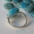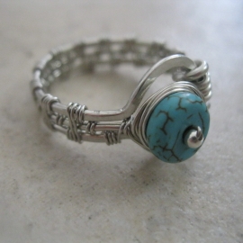 The ring shown is a sample of what your ring will look like. It features a Larimar Blue Crazy Lace Agate stone. The bead is a 10 mm puff square shape. It is hand wrapped, made to order, with 22-gauge anti-tarnish silver-colored Artistic Wire. This ring was made for a child. The bead size makes a nice ring for all ages.