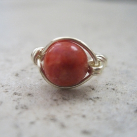 This ring features a lovely white Mother of Pearl rectangle bead. The bead measures approximately 12x9mm. It is made to order, hand wrapped with 20-gauge solid copper wire. It has been antiqued and polished. The last photo is an example of antiqued brass.